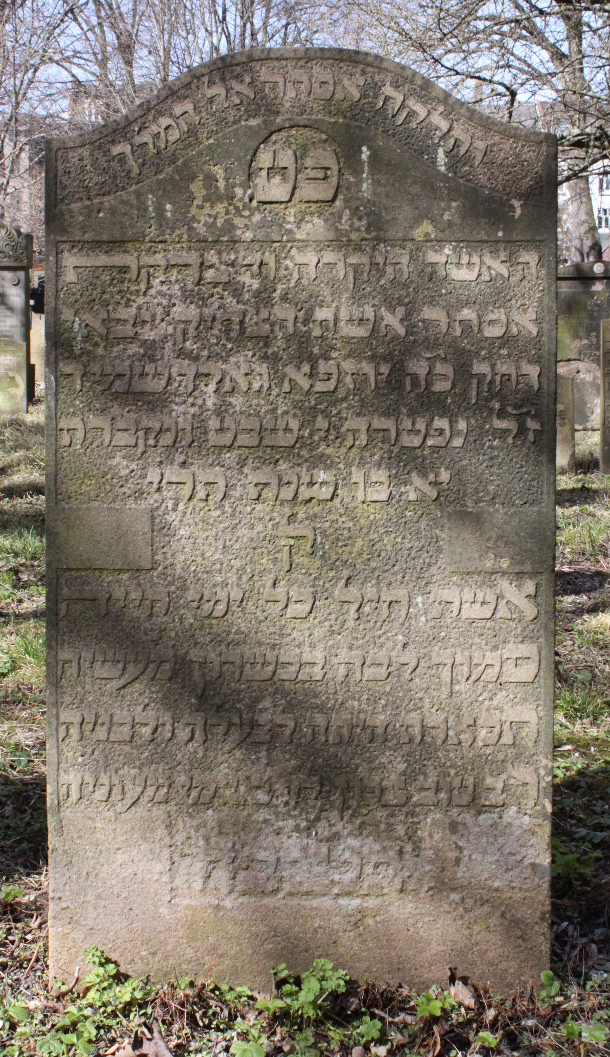 | Person: GOLDSCHMIDT, Esther née Wallich, married to Joseph Berendt [GOLDSCHMIDT] - spouse H-4-8-Mlgd Hebr. name: Ester ishat Josef Goldschmit Date of burial: 1850,23.1 Place of burial: Mollegade (Cph.) H-4-9 identified stone- see neighbouring burials in the row *) Cross-references: Danish-Jewish Genealogical Database (requires membership of SDJH) |