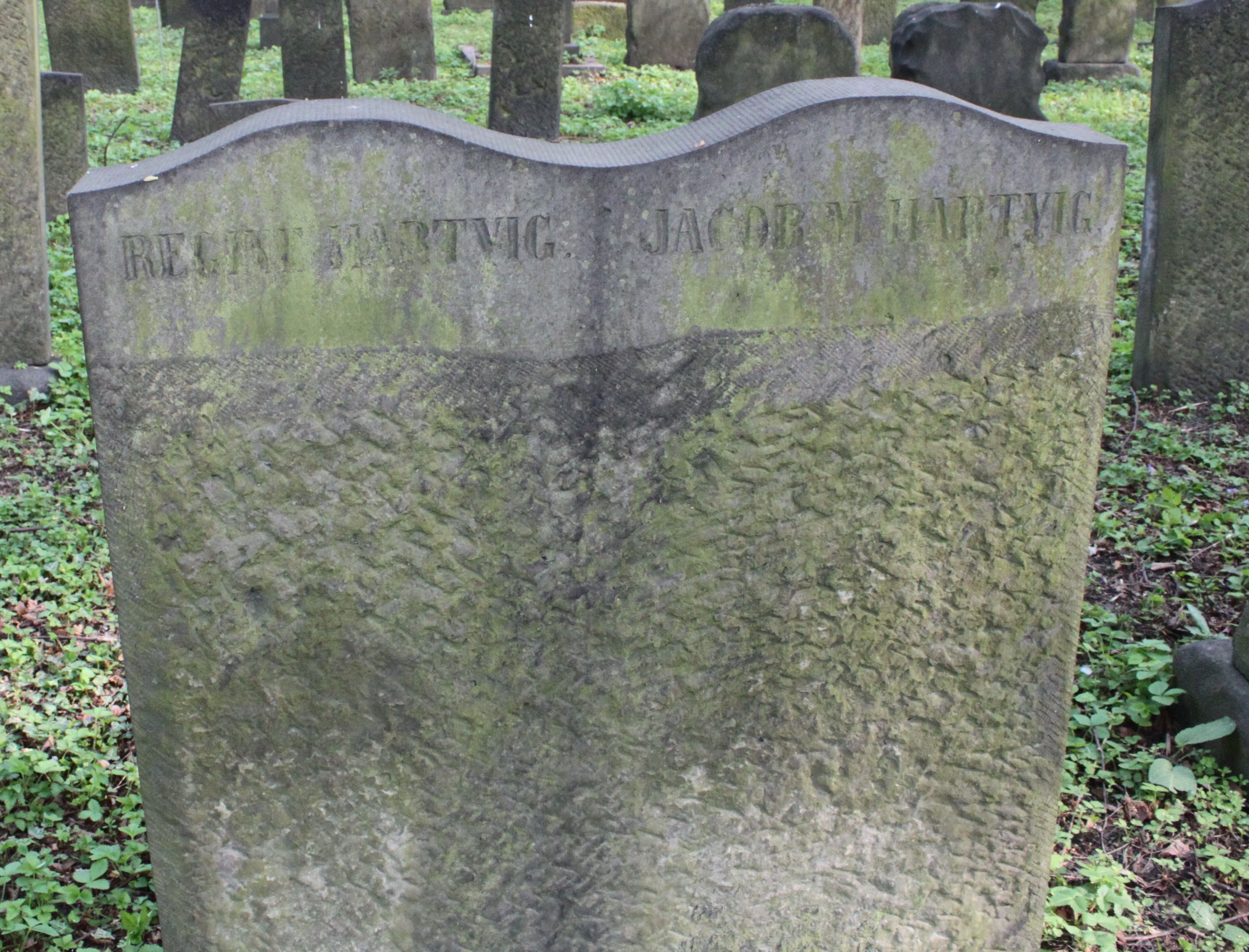 | Person: HARTVIG (HARTIG), Jacob Marcus - kaldt "Jacob Marcus HOMEL (HAMEL)" marskandiser, Hebr. navn: Jokev ben Mordechai Homel Begravelsesdato: 1861,22.5 Begravelsesplads: Møllegade (Kbh.) B-11-12 identificeret sten- se nabobegravelserne i rækken *) Note: Dobbeltsten med ægtefælle Krydsreferencer: Dansk-Jødisk Genealogisk Database (kræver SDJH-medlemskab) |