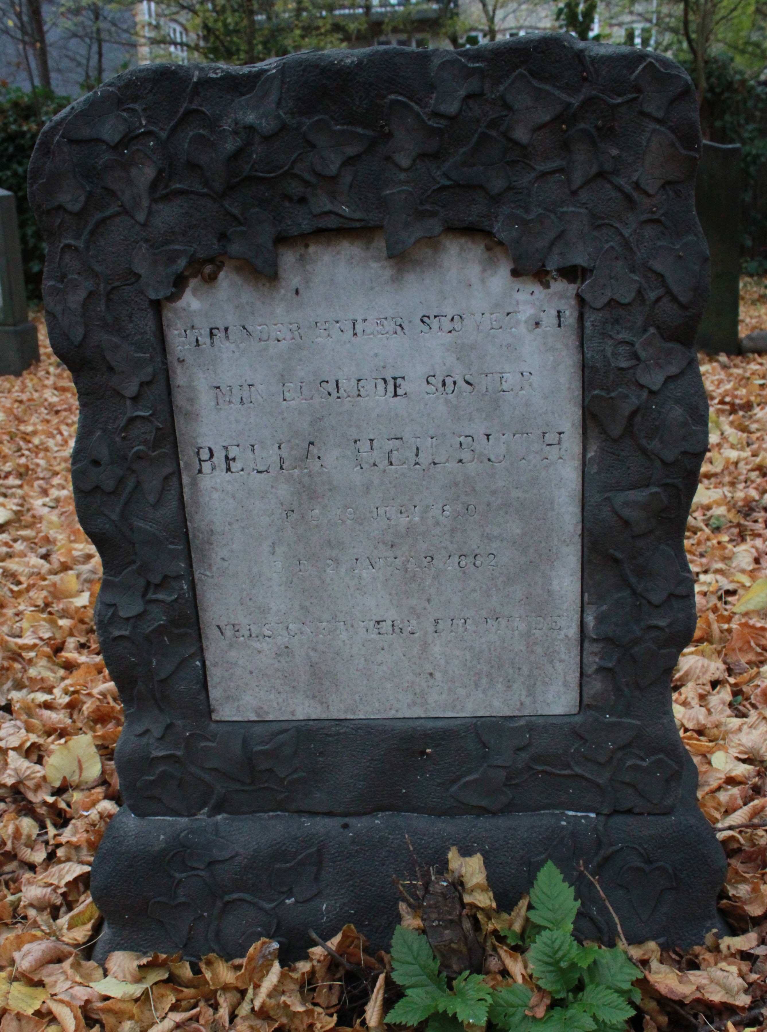 | Person: HEILBUTH, Bella ugift, Begravelsesdato: 1882,2.1 Begravelsesplads: Møllegade (Kbh.) J-24-5 Legat identificeret sten- se nabobegravelserne i rækken *) Krydsreferencer: Dansk-Jødisk Genealogisk Database (kræver SDJH-medlemskab) |