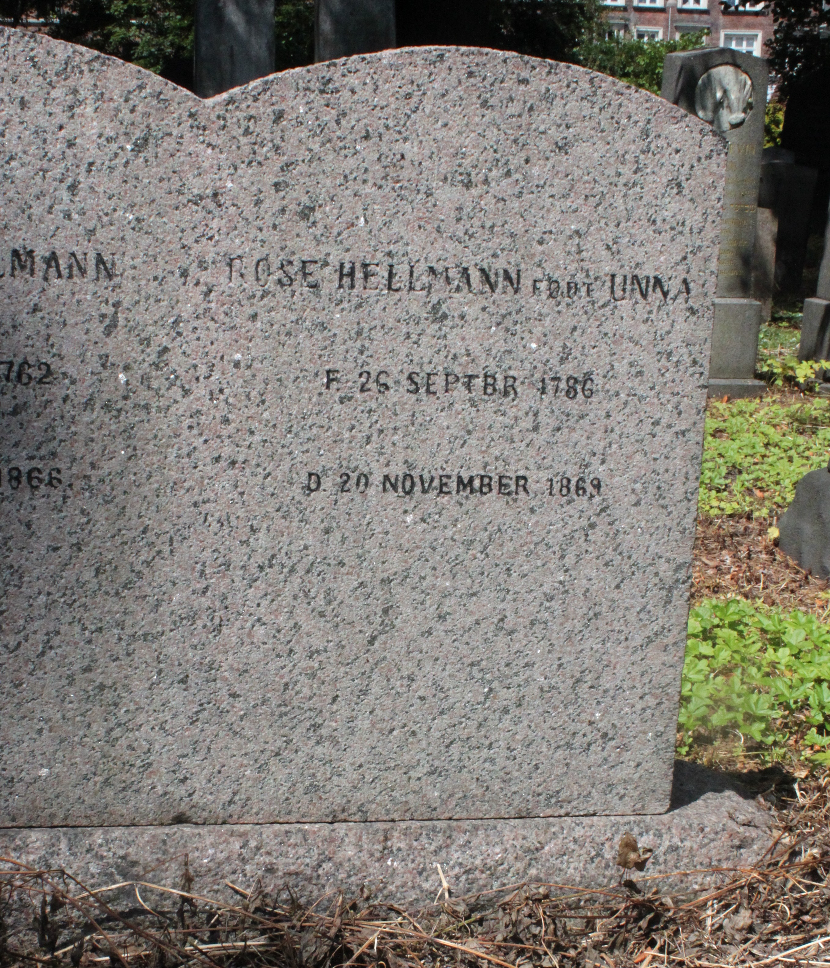 | Person: HELLMANN, Rose née Unna, married to Gerson [HELLMANN] - spouse A-5-4-Mlgd Date of burial: 1869,20.11 Place of burial: Mollegade (Cph.) A-5-5 Legat identified stone- see neighbouring burials in the row *) Cross-references: Danish-Jewish Genealogical Database (requires membership of SDJH) |