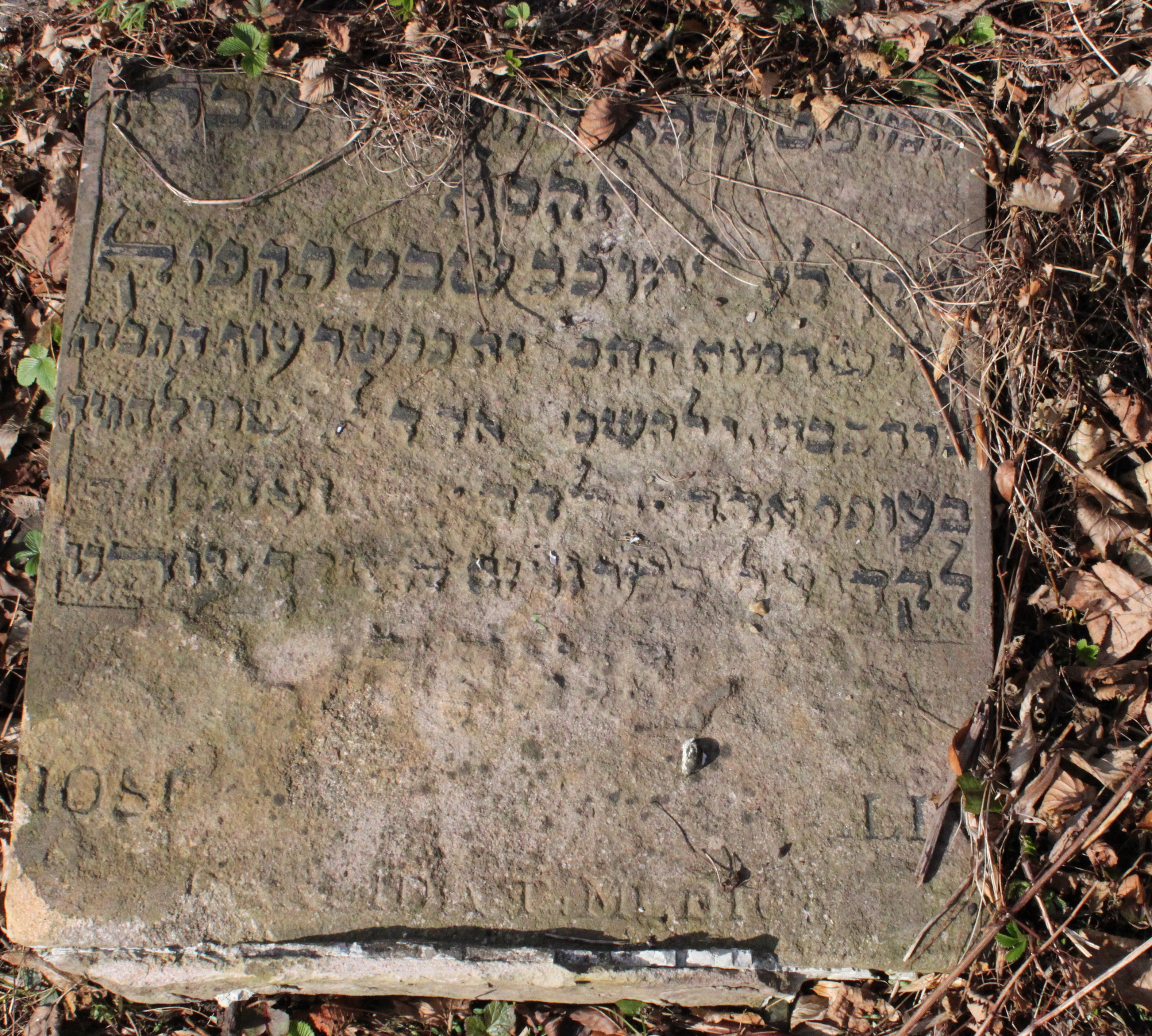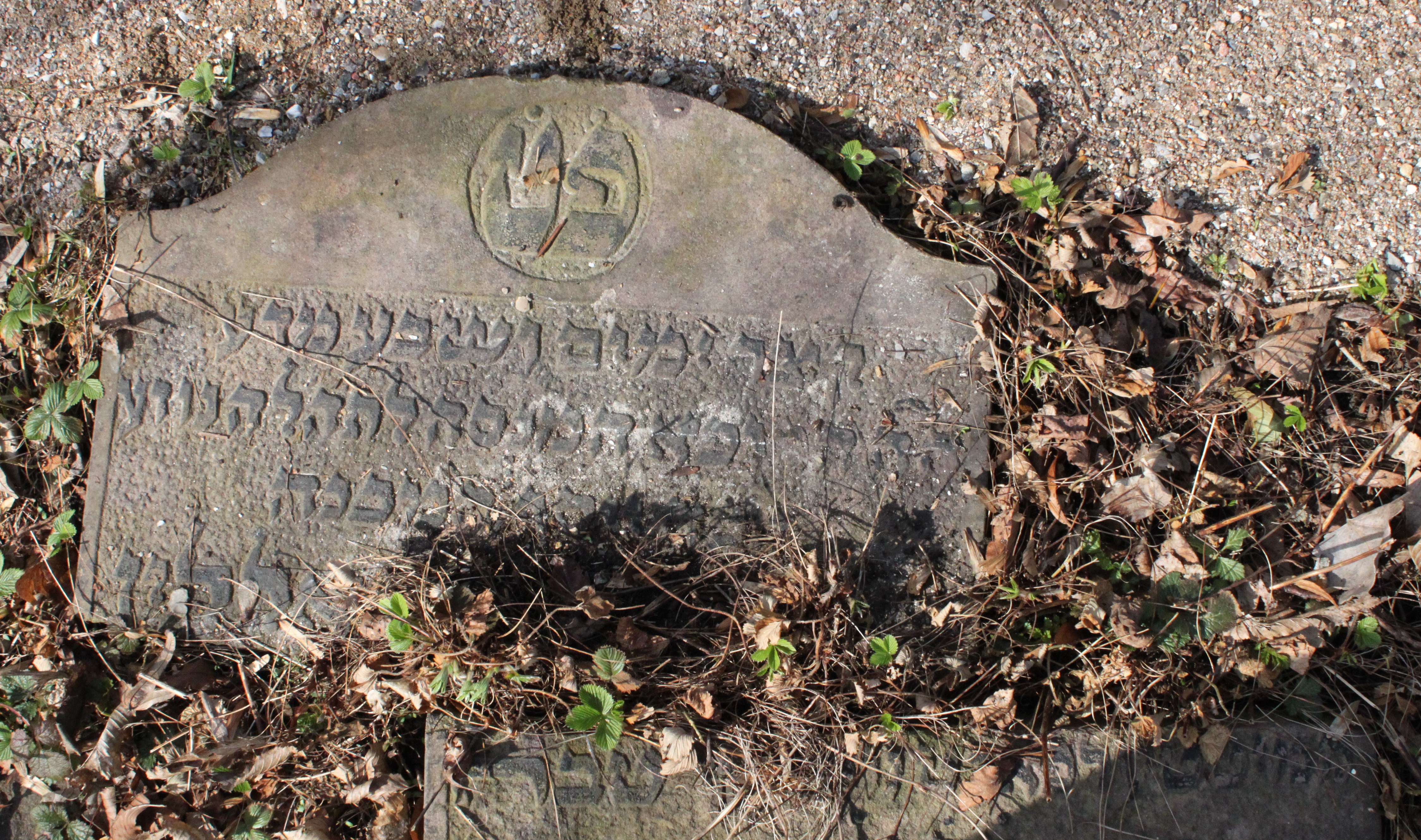 Hebr. navn iflg. Margolinsky "Systematisk", Sten knækket netop ved navn (Ballin nederst tv. på øverste stykke; dato på nederste stykke)