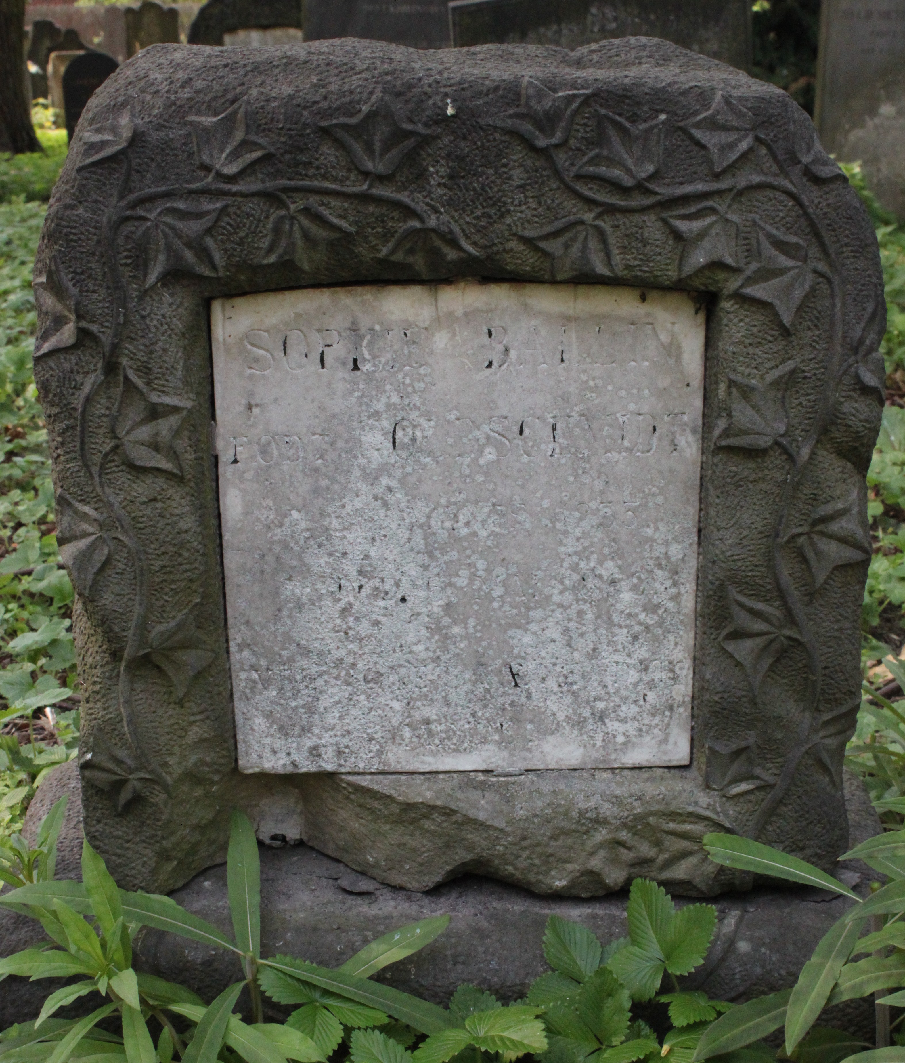 | Person: BALLIN, Sophie fødenavn Goldschmidt, gift med Jacob [BALLIN] Begravelsesdato: 1860,6.5 Begravelsesplads: Møllegade (Kbh.) B-9-29 Legat identificeret sten- se nabobegravelserne i rækken *) Krydsreferencer: Dansk-Jødisk Genealogisk Database (kræver SDJH-medlemskab) |