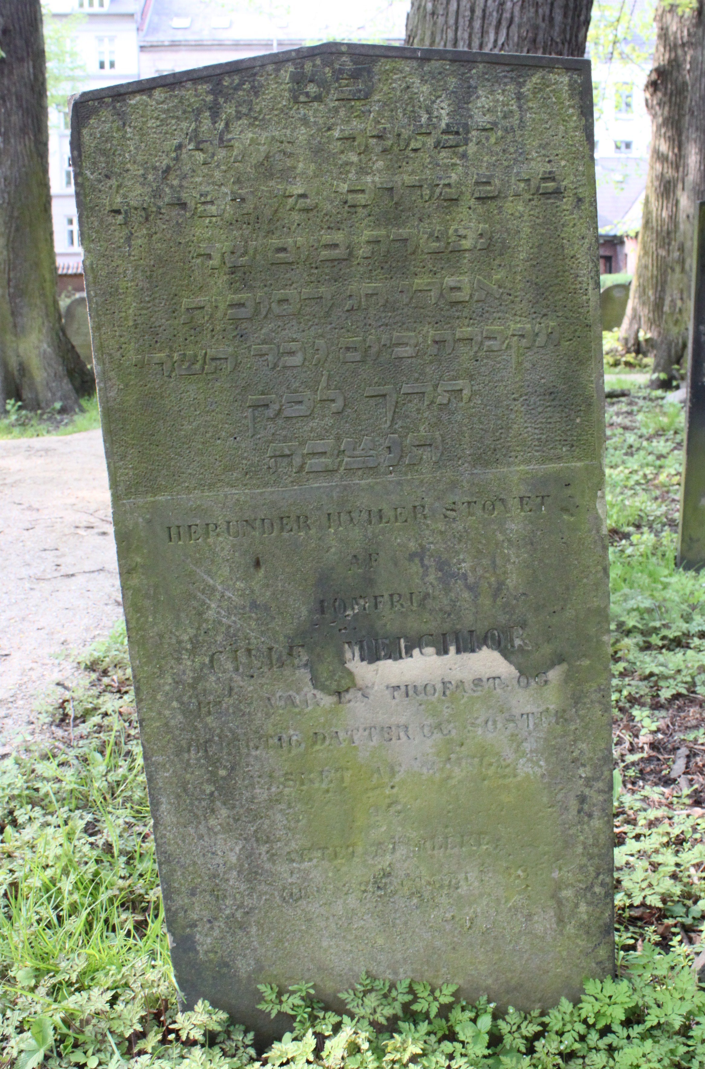 | Person: MELCHIOR, Cille ugift, Hebr. navn: Zelle* bat Mordechai Melcher Begravelsesdato: 1859,22.10 Begravelsesplads: Møllegade (Kbh.) B-9-2 identificeret sten- se nabobegravelserne i rækken *) Note: På rækkens plads nr 1 Krydsreferencer: Dansk-Jødisk Genealogisk Database (kræver SDJH-medlemskab) |