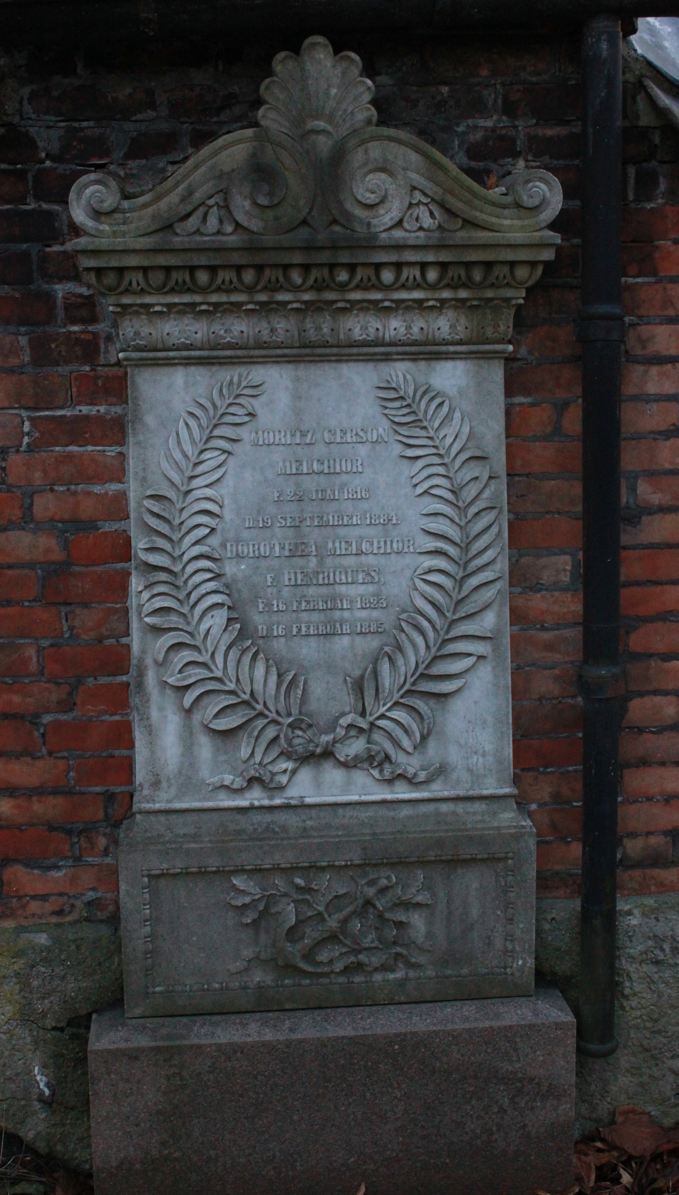| Person: MELCHIOR, Moritz Gerson etatsråd, Begravelsesdato: 1884,19.9 Begravelsesplads: Møllegade (Kbh.) MB-20 Legat identificeret sten- se nabobegravelserne i rækken *) Note: Fælles sten med ægtefælle Krydsreferencer: Dansk-Jødisk Genealogisk Database (kræver SDJH-medlemskab) |