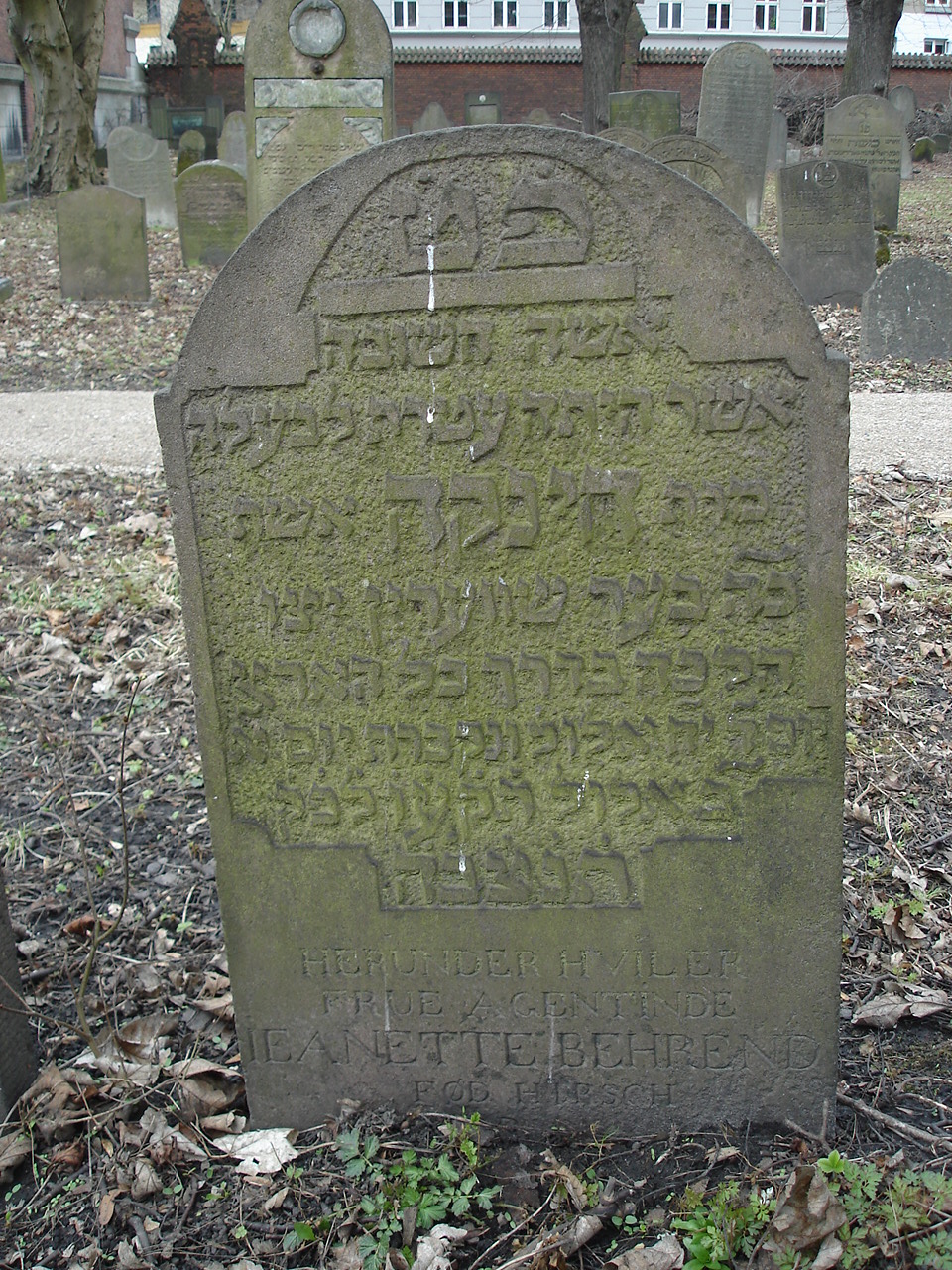| Person: BEREND (BEHREND, BEHRENDT), Jeanette fødenavn Hirsch, gift med Israel Joachim [BEREND (BEHREND, BEHRENDT)] - ægtefælle E-18-23-Mlgd Hebr. navn: Chinke Begravelsesdato: 1816,11.9 Begravelsesplads: Møllegade (Kbh.) E-18-22 identificeret sten- se nabobegravelserne i rækken *) Krydsreferencer: Dansk-Jødisk Genealogisk Database (kræver SDJH-medlemskab) |