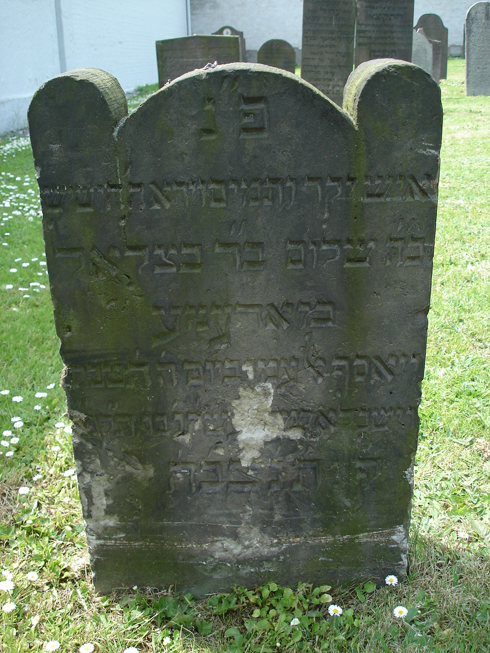 Den hebraiske gravskrift: Her hviler en ædel, redelig og gudsfrygtig Mand, den højtbedagede Herr Scholoum, Søn af Bezalel fra Odense. Og han samledes med sit Folk Torsdagen 5. Tebet og vendte tilbage til sit Land Dagen før den hellige Sabat, 6. i samme Måned 5586