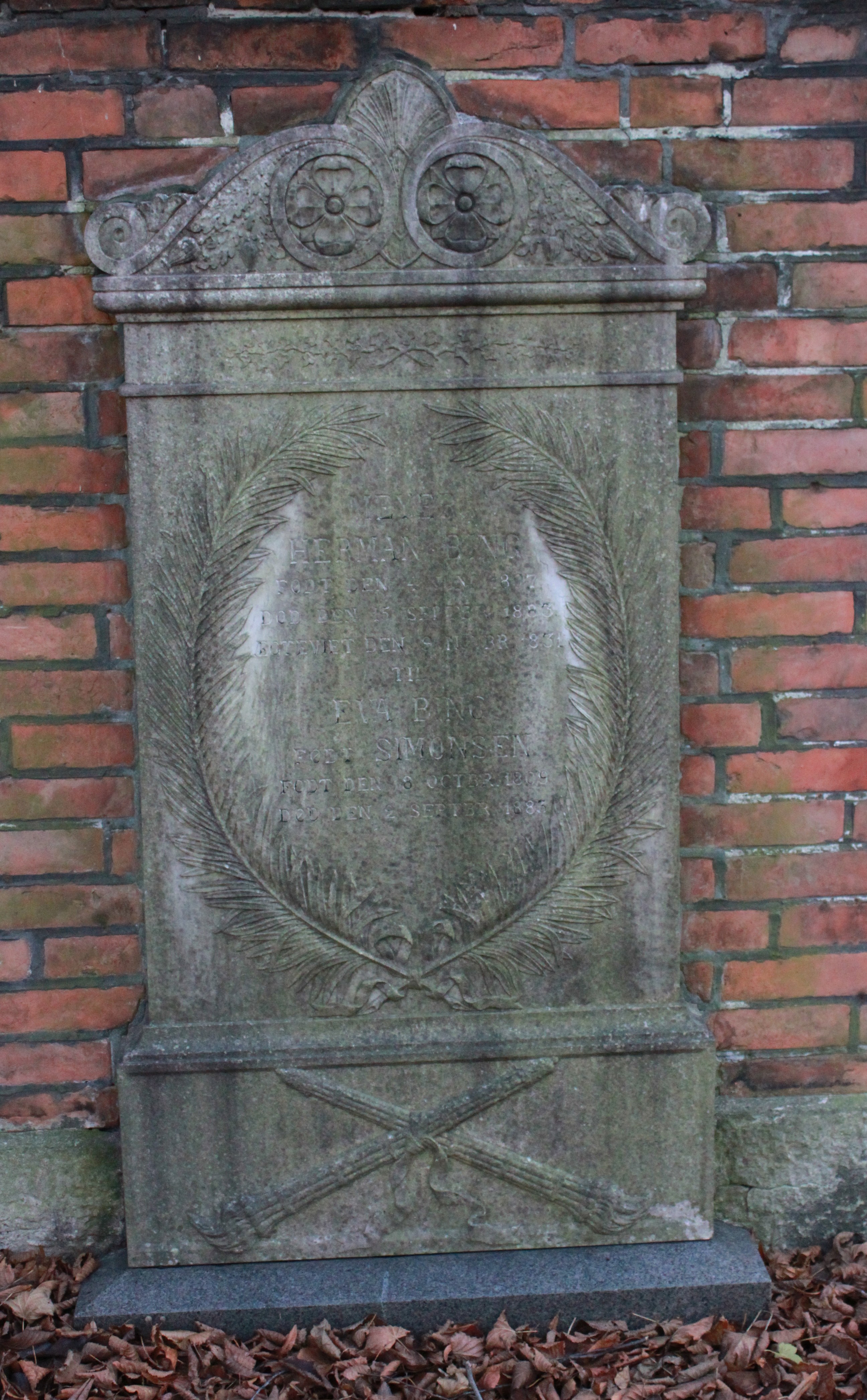 | Person: BING, Eva fødenavn Simonsen, gift med Meyer Herman [BING] - ægtefælle MB-90-Mlgd Begravelsesdato: 1883,2.9 Begravelsesplads: Møllegade (Kbh.) MB-91 Legat identificeret sten- se nabobegravelserne i rækken *) Note: Fælles sten med ægtefælle Krydsreferencer: Dansk-Jødisk Genealogisk Database (kræver SDJH-medlemskab) |