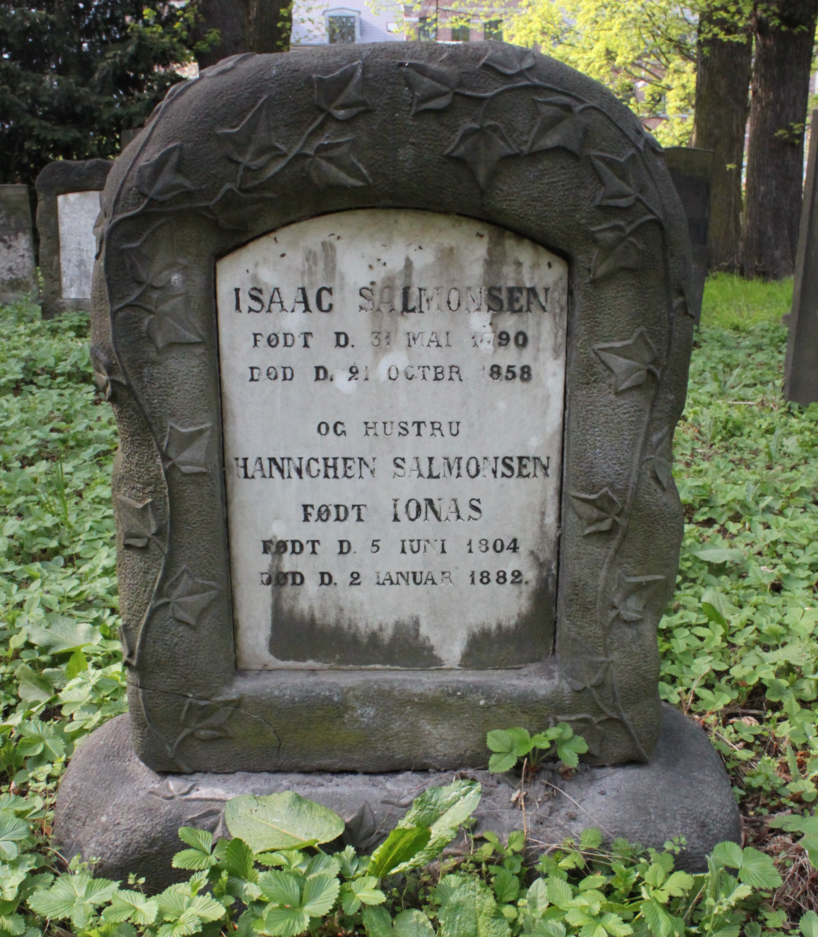 | Person: SALOMONSEN, Isaac Aron - kaldt "Isaac Aron NYBORG" tøjmager, Viborg Hebr. navn: Aizik bar Aharon Niborg Begravelsesdato: 1858,21.10 Begravelsesplads: Møllegade (Kbh.) B-7-31 Legat identificeret sten- se nabobegravelserne i rækken *) Note: Fælles sten med ægtefælle Krydsreferencer: Dansk-Jødisk Genealogisk Database (kræver SDJH-medlemskab) |