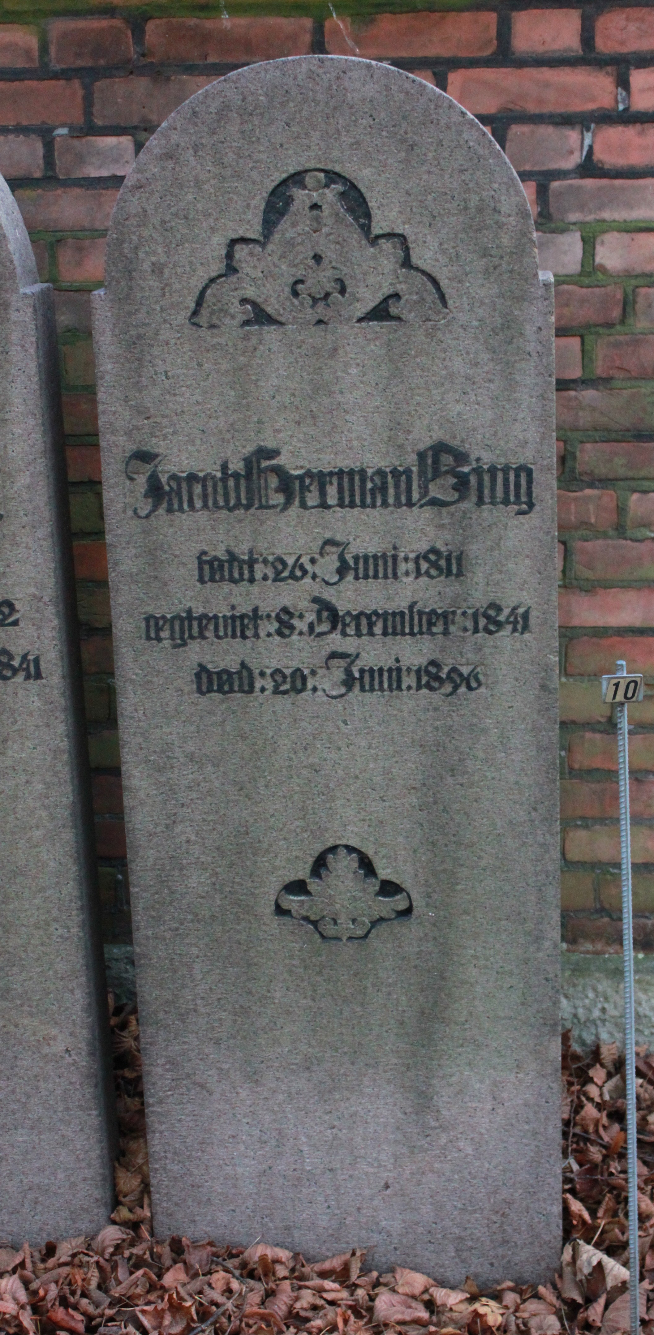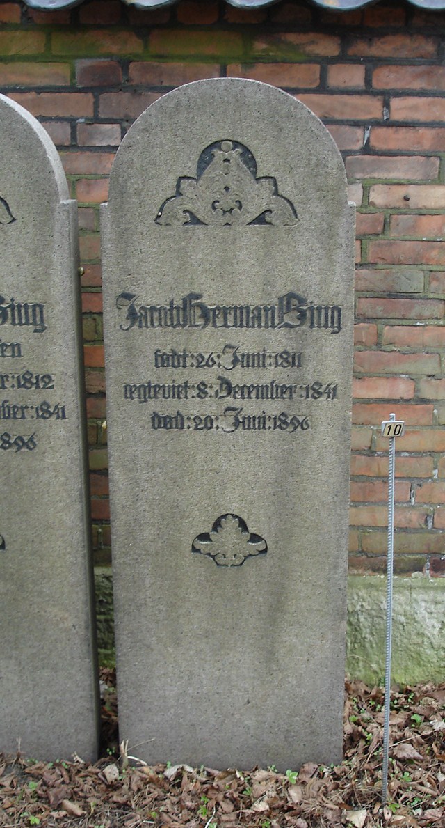 | Person: BING, Jacob Herman grosserer, Begravelsesdato: 1896,20.6 Begravelsesplads: Møllegade (Kbh.) MB-89 Legat identificeret sten- se nabobegravelserne i rækken *) Krydsreferencer: Dansk-Jødisk Genealogisk Database (kræver SDJH-medlemskab) |