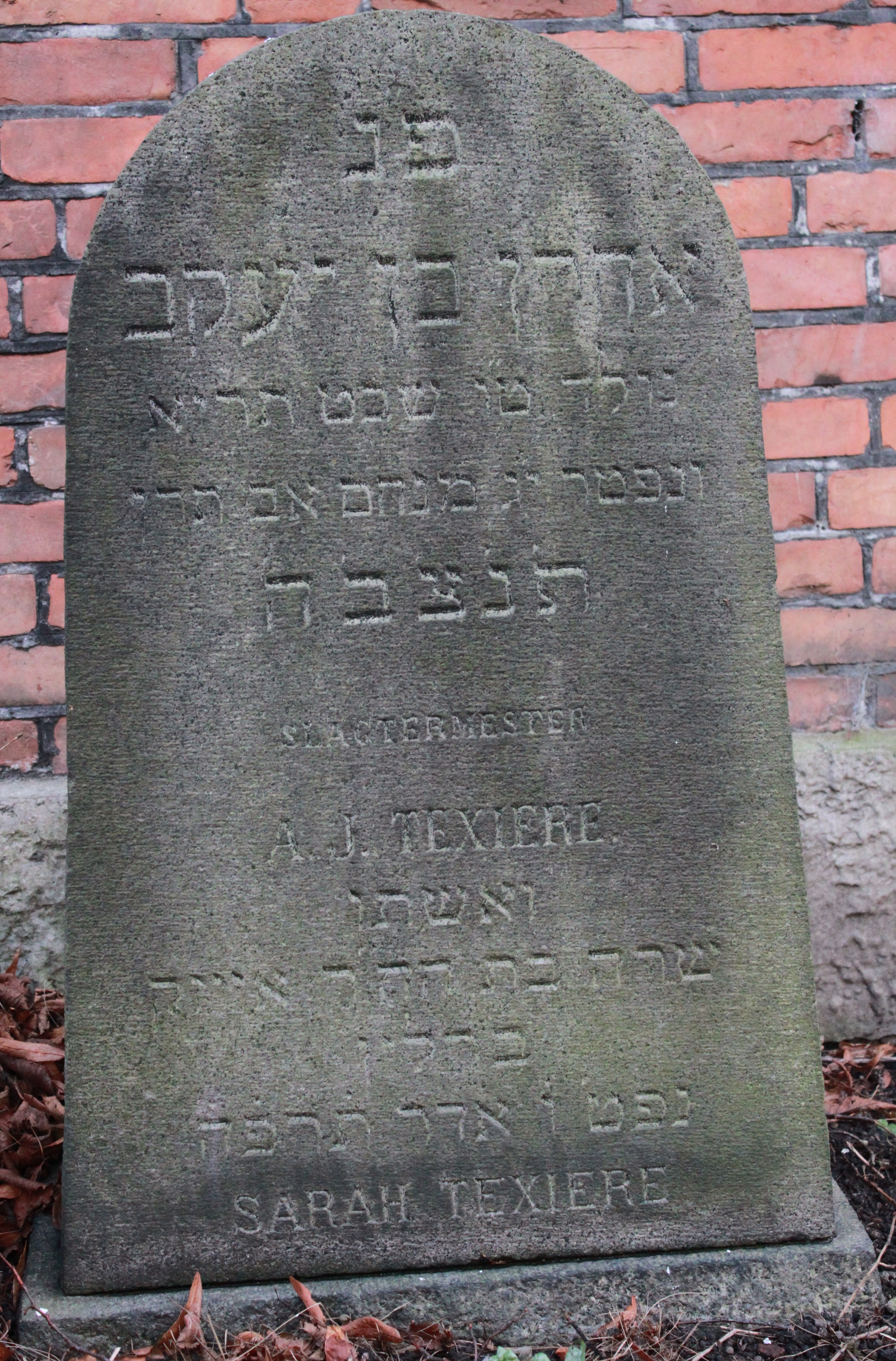 | Person: TEXIERE, Adolf Jacob slagtermester, Begravelsesdato: 1890,29.7 Begravelsesplads: Møllegade (Kbh.) MB-66 identificeret sten- se nabobegravelserne i rækken *) Note: Fælles sten med ægtefælle Krydsreferencer: Dansk-Jødisk Genealogisk Database (kræver SDJH-medlemskab) |