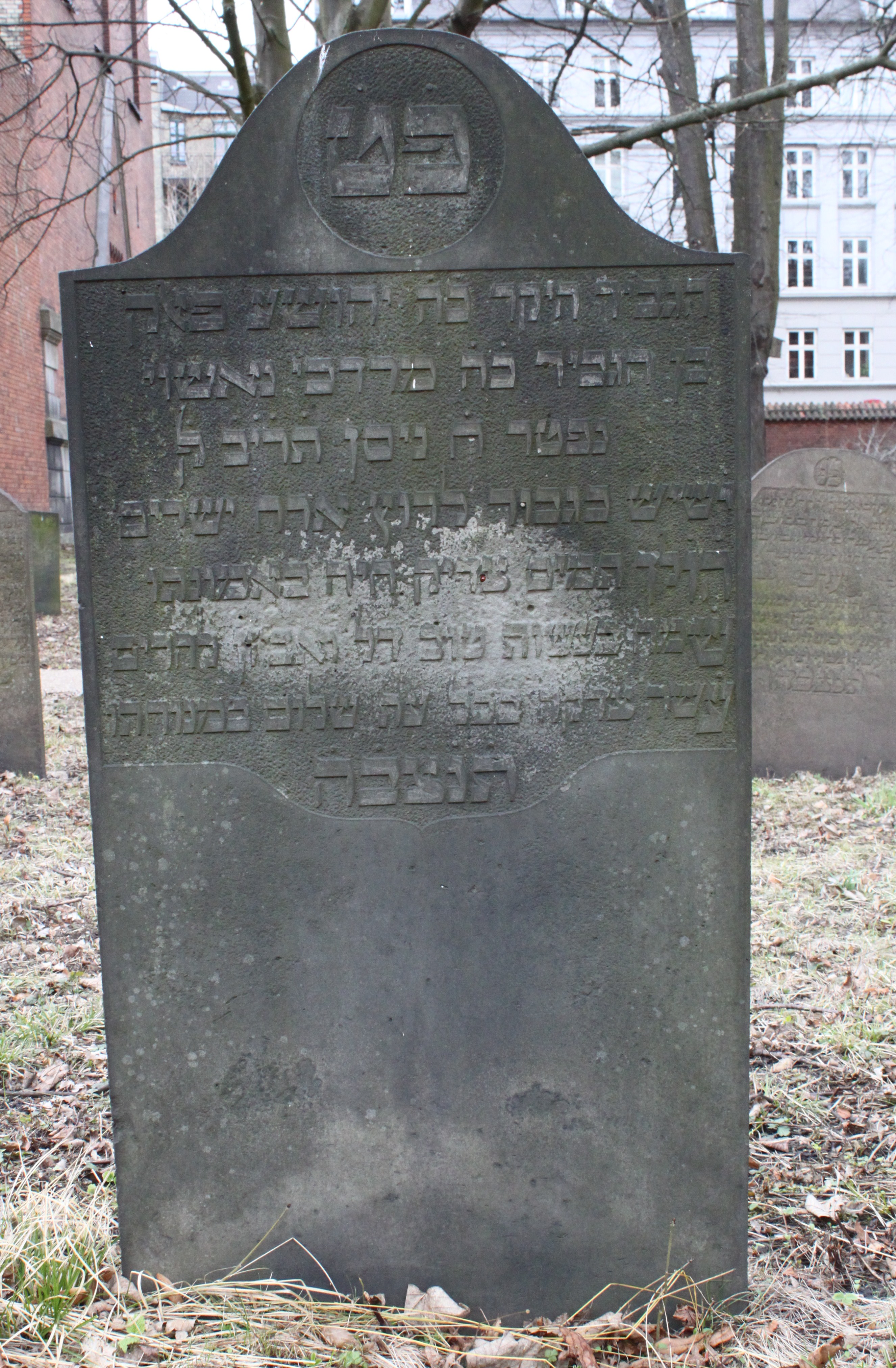 | Person: VALENTIN, Falk Marcus - kaldt "Falk Marcus NASCHE (NASCHOU)" grosserer, Hebr. navn: Jehoschua Falk ben Mordechai Naschou Begravelsesdato: 1852,28.3 Begravelsesplads: Møllegade (Kbh.) E-16-24 identificeret sten- se nabobegravelserne i rækken *) Krydsreferencer: Dansk-Jødisk Genealogisk Database (kræver SDJH-medlemskab) |