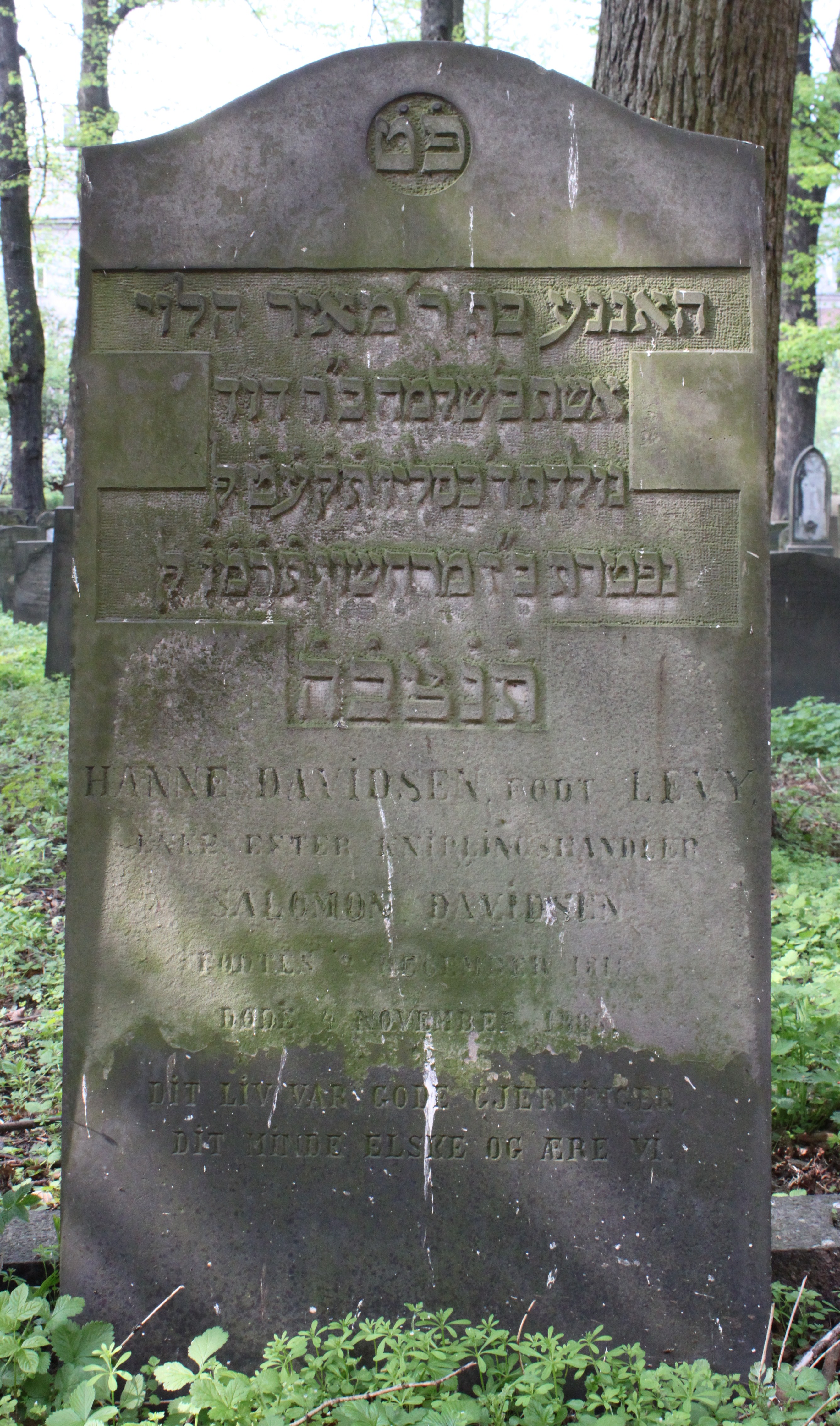 | Person: DAVIDSEN, Hanne fødenavn Levy, gift med Salomon [DAVIDSEN] - ægtefælle G-10-4-Mlgd Hebr. navn: Hanne bat Meir Halevi Begravelsesdato: 1865,4.11 Begravelsesplads: Møllegade (Kbh.) B-1-16 Legat identificeret sten- se nabobegravelserne i rækken *) Krydsreferencer: Dansk-Jødisk Genealogisk Database (kræver SDJH-medlemskab) |