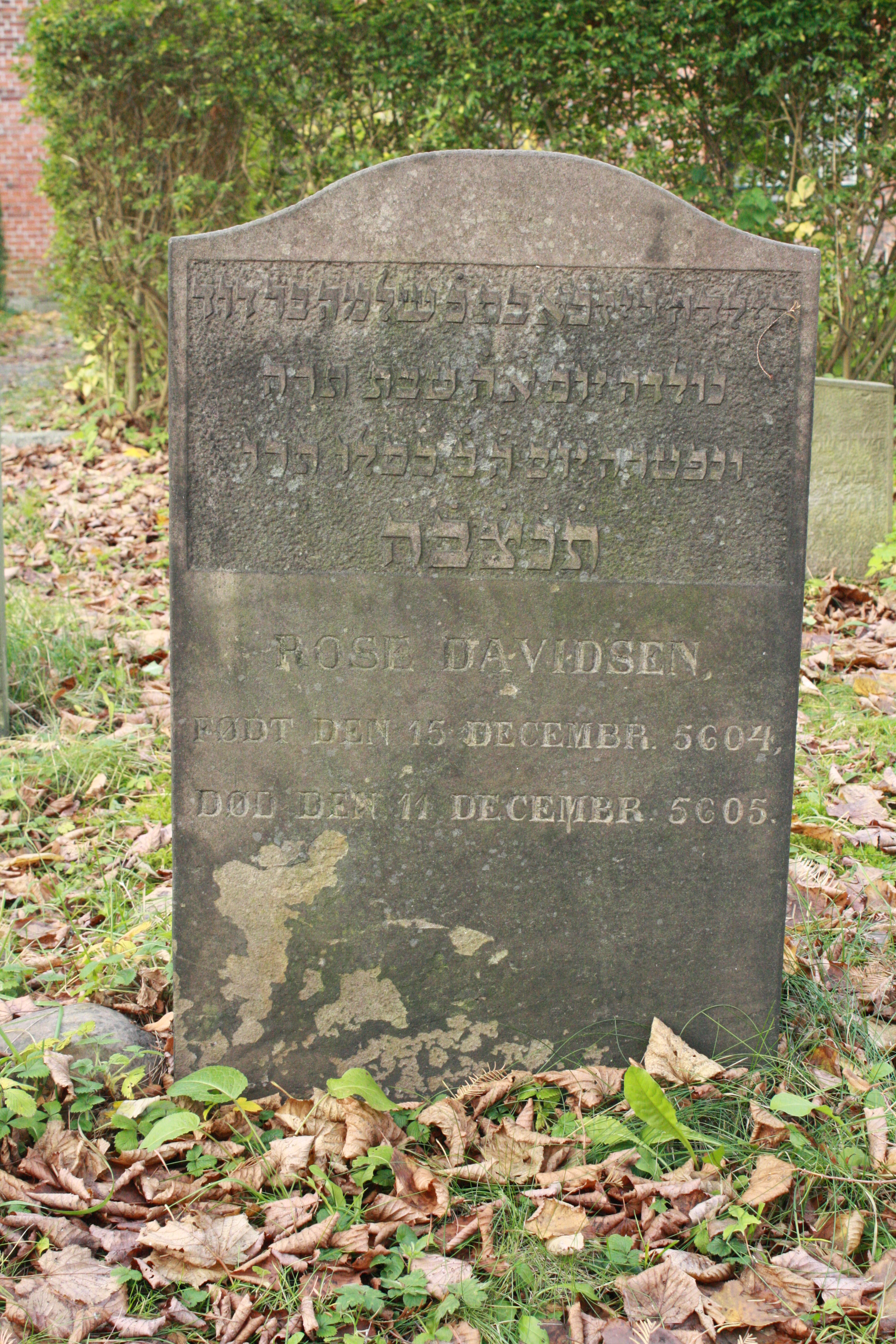 | Person: DAVIDSEN, Rosa barn, Hebr. navn: Rizche bat Schlomo David Begravelsesdato: 1845,11.12 Begravelsesplads: Møllegade (Kbh.) X-14-76-28 identificeret sten- se nabobegravelserne i rækken *) Note: På gl. gangareal Krydsreferencer: Dansk-Jødisk Genealogisk Database (kræver SDJH-medlemskab) |