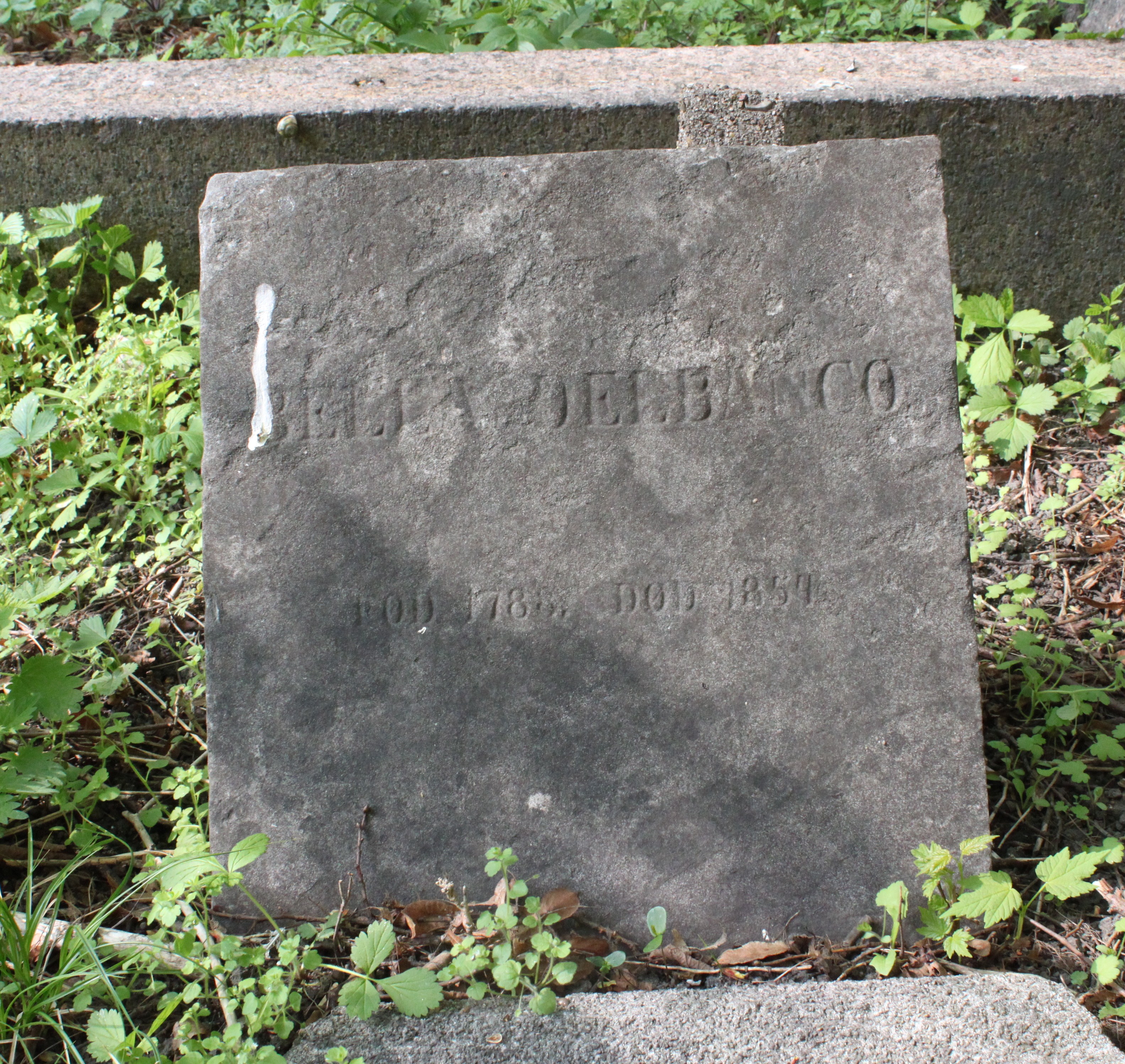 | Person: DELBANCO, Bella ugift, Begravelsesdato: 1854,12.4 Begravelsesplads: Møllegade (Kbh.) B-2-10 identificeret sten- se nabobegravelserne i rækken *) Note: Ved soklen formodentlig fragment af sten i nr. 11 Krydsreferencer: Dansk-Jødisk Genealogisk Database (kræver SDJH-medlemskab) |
