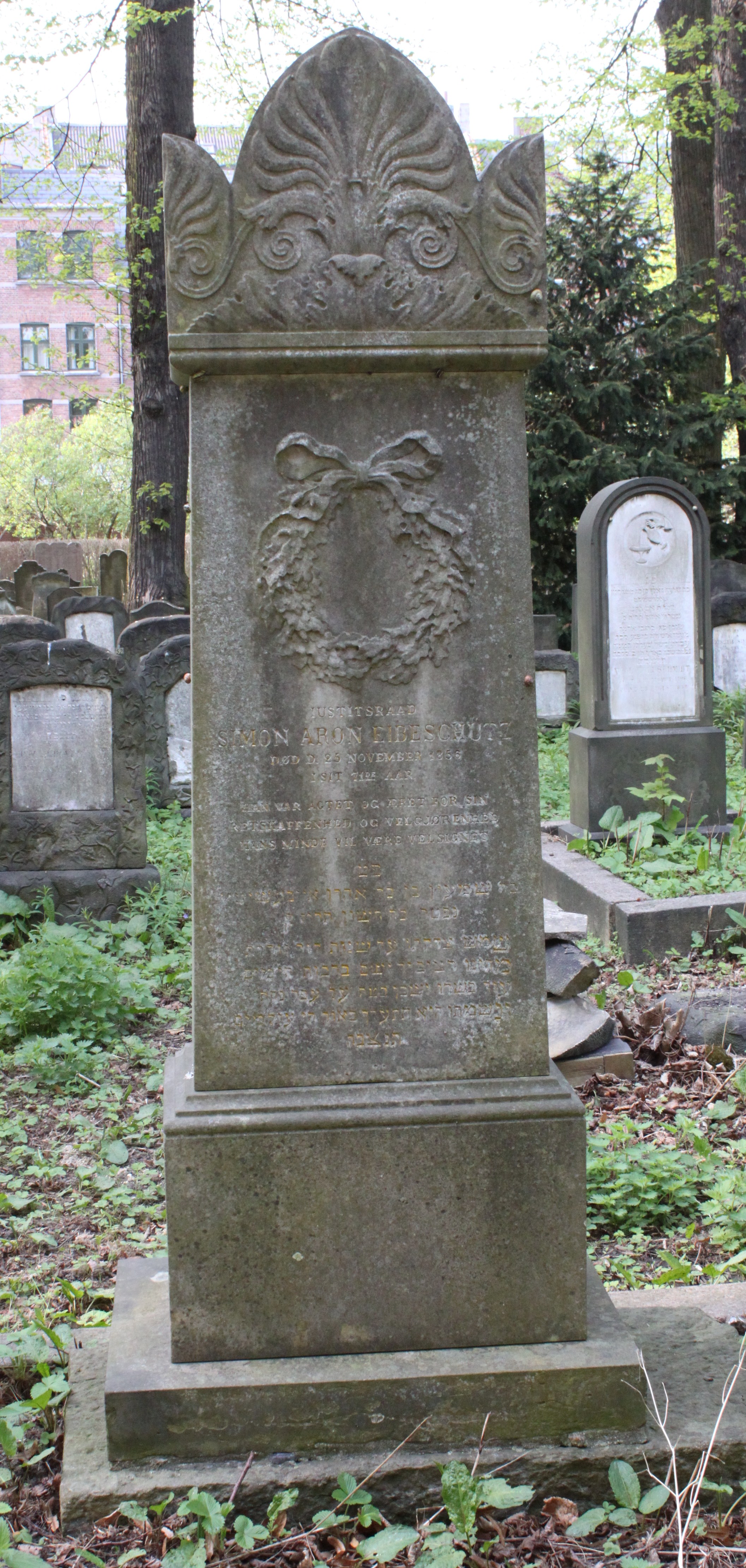 | Person: EIBESCHüTZ, Simon Aron justitsråd, Hebr. navn: Schimeon ben Aharon Eibeschitz Begravelsesdato: 1856,25.11 Begravelsesplads: Møllegade (Kbh.) B-5-27 identificeret sten- se nabobegravelserne i rækken *) Krydsreferencer: Dansk-Jødisk Genealogisk Database (kræver SDJH-medlemskab) |
